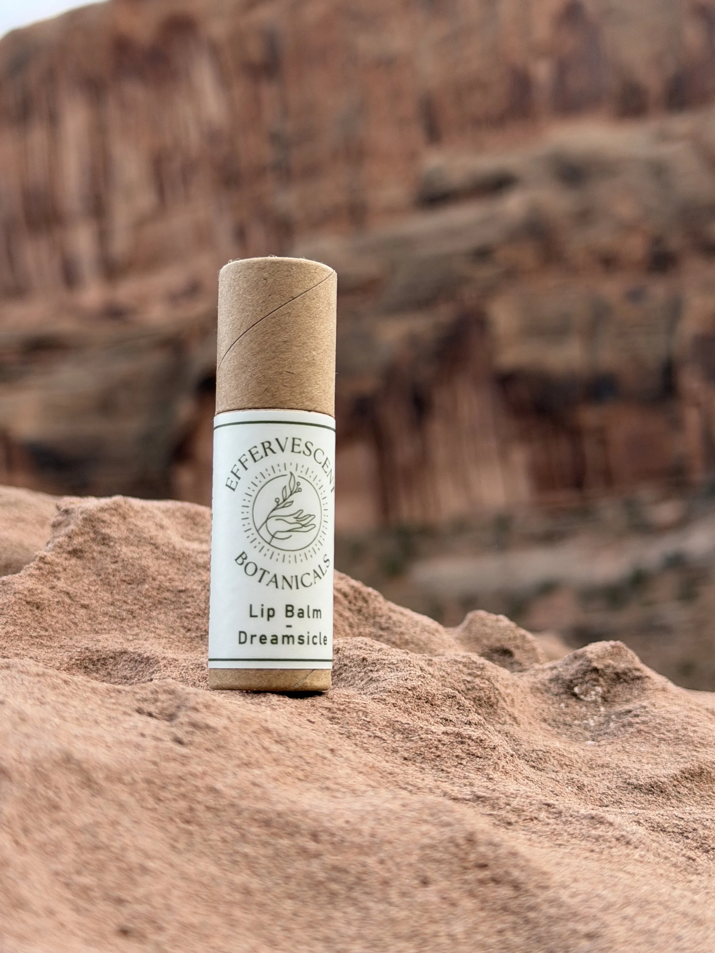 No matter how dry or sunny it is our zinc oxide Dreamsicle chapstick hydrates and protects your lips. With uplifting notes of vanilla bean and citrus.